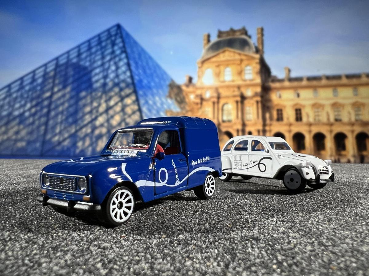 Vier einzigartige Fahrzeug-Kombinationen – bestehend aus einem offiziell lizenzierten Spielzeugauto und einem thematisch passenden Trailer - repräsentieren jeweils eine Region Frankreichs.