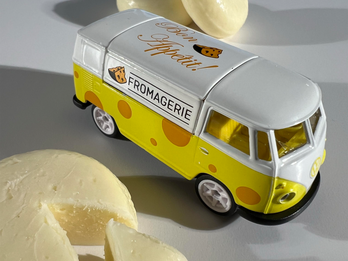 Die sechs Fahrzeuge bringen beliebte französische Leckereien auf die Straße: Baguette, Dijon Senf, Macarons, Olivenöl, Käse und Kaffee. Diese Produktline ist eine gelungene Verbindung von Automobil- und Kulinarik Kunst.